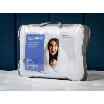 Одеяла упаковываются в сумку из ПВХ и спандбонда. Внутри сумки расположен вкладыш с информацией об одеяле.