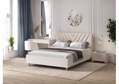 Кровать Ora имеет динамичное мягкое изголовье, изюминкой которого является объемная V-образная стежка.