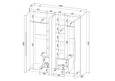 Габаритные размеры шкафа: Ширина/высота/глубина: 1800/ 2128/ 547 мм.