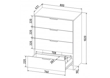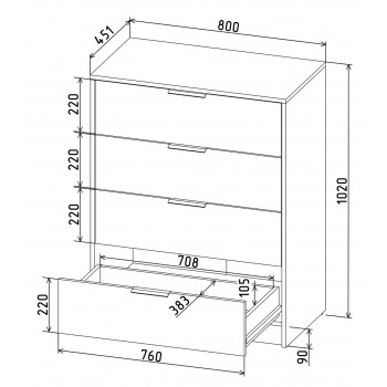 Габаритные размеры комода: Ширина/высота/глубина: 800/ 1020/ 451 мм.