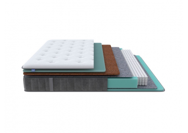 Упругая текстура латексированного кокосового волокна в составе придает необходимую жесткость, усиливая поддержку позвоночника. Объемный трикотажный чехол с волокнами вискозы подарит нежные ощущения.